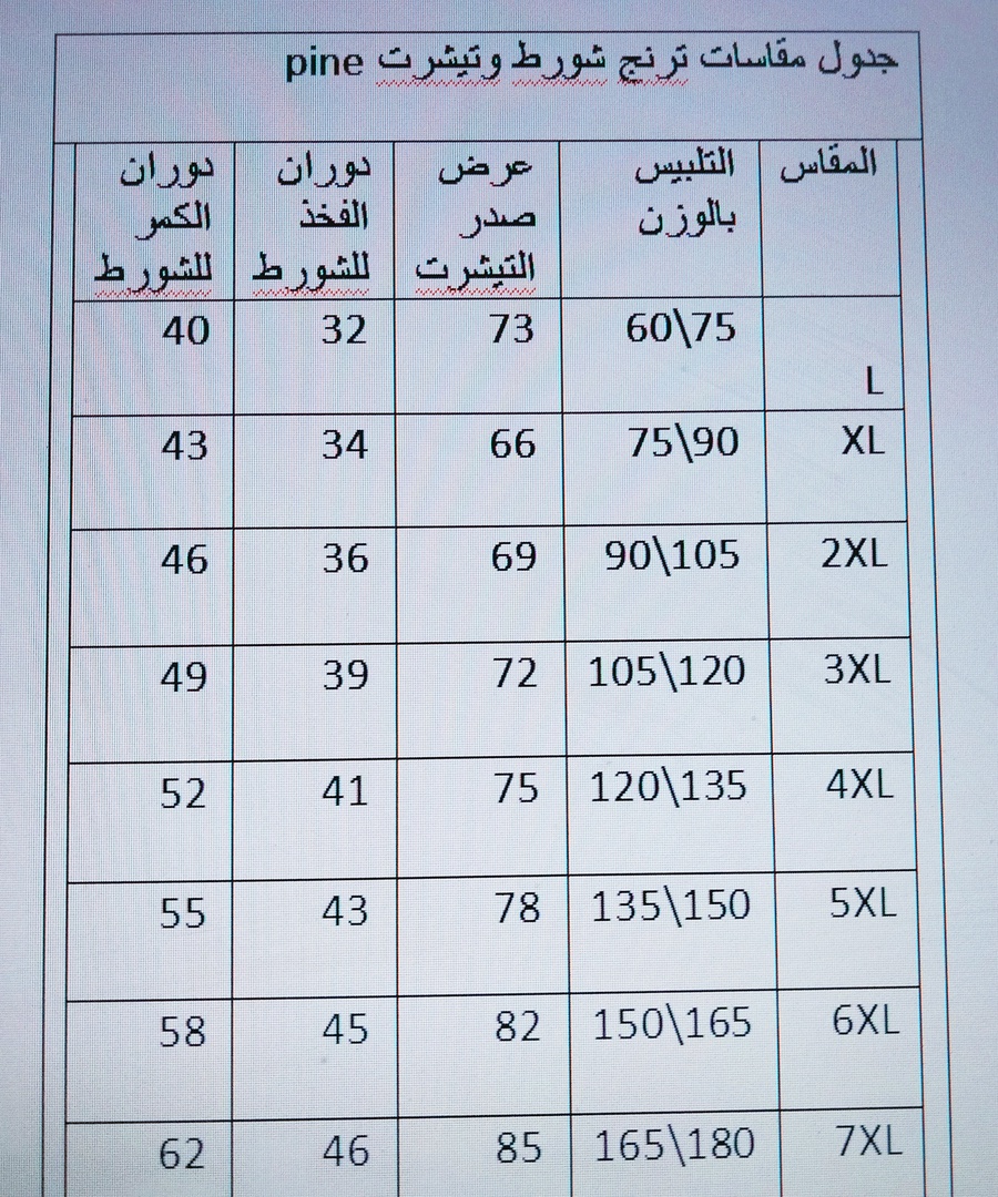 تلبيس منL حتي 7XL تلبيس حتي 190 كيلو